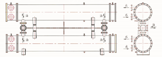 管殼式換熱器采用雙聯(lián)結(jié)構(gòu),由兩只相同面積的冷油器和三通閥裝置構(gòu)成,一只工作,一只備用,每個冷卻器能承擔(dān)整個系統(tǒng)的冷卻負(fù)荷,管板一頭固定,一頭浮動、可拆卸的管束和水室箱蓋,便于運(yùn)行過程中清洗、檢查和維修。管殼式換熱器材質(zhì),根據(jù)使用場所、水系統(tǒng)條件可有多種選擇。